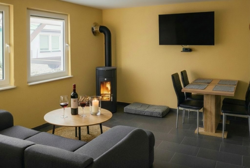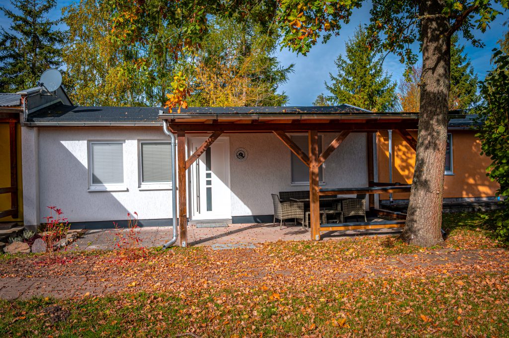 Entdecken Sie unseren gemütlichen Bungalow am Zeulenrodaer Meer mit Kamin, überdachter Terrasse und moderner Ausstattung für einen erholsamen Aufenthalt.